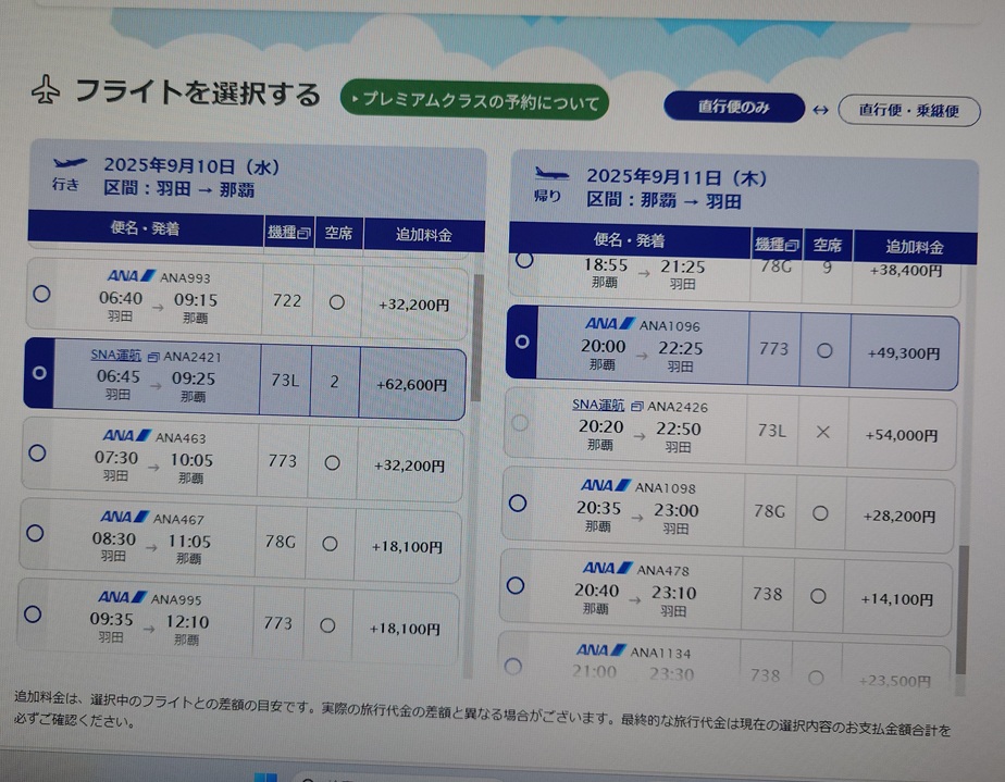 でも見ました?朝イチの便とかゴールデンタイムの便とか、なぜか「プレミアム銀座価格」発動。追加料金が平気で数万円。下手したら+6万超え。(正気の沙汰じゃねえーっ!)