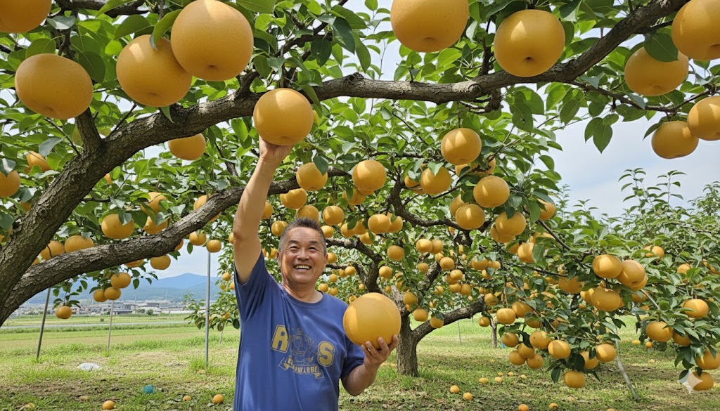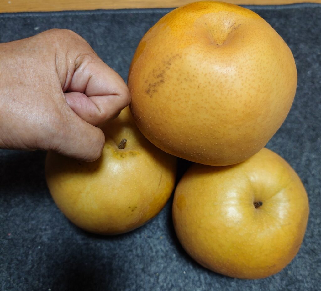 「もしおじさんがその梨をもぎ取るとしたら」の妄想ショット(笑)実は根が単純なので沢山の大きな梨をもぎ取る夢を見ちゃったんですよね。まさしく画像のような夢・・。