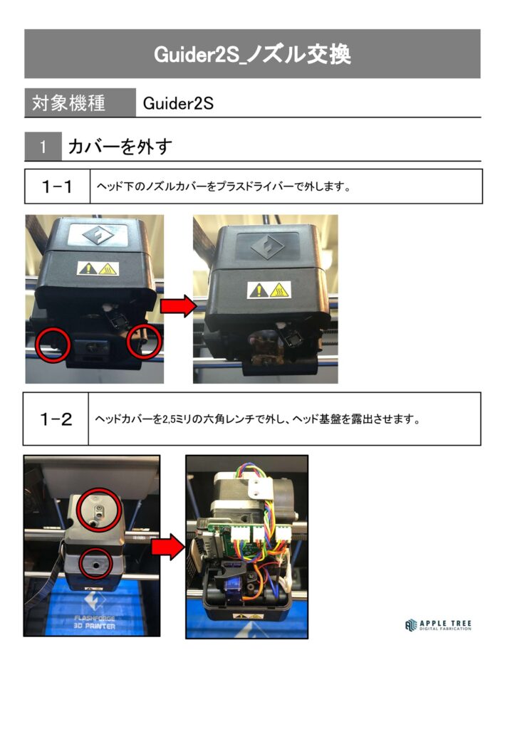 ノズル交換の手順を確認する。