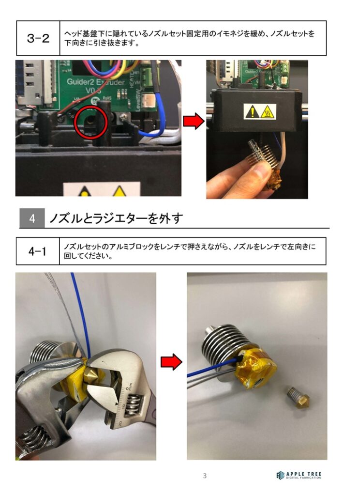 GW明け、図の手順に従ってノズル交換を行う。